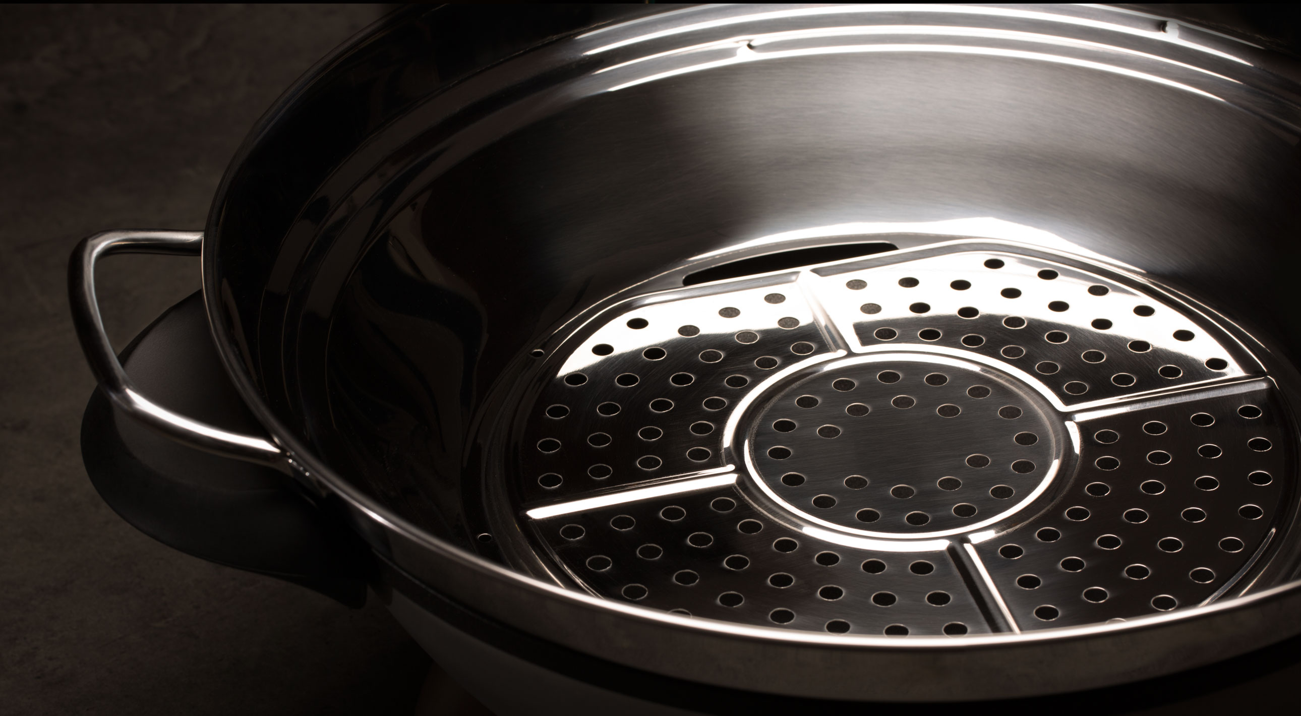 В воке объёмом 8 л удобно готовить блюда для большой компании: плов, том ям, овощи, супы, ризотто, компоты и даже фондю. Крышка с регулируемым выходом пара поможет при тушении на медленном огне и сохранит блюдо горячим.